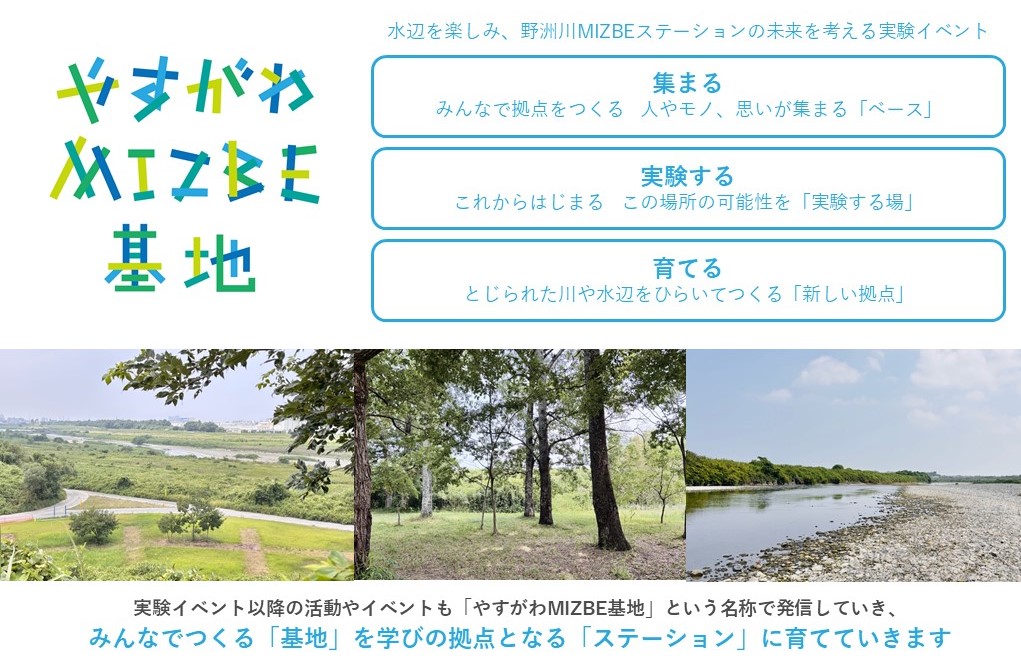 今回は、野洲川の水辺をひらき、新たな拠点をみんなでつくっていく第一歩として水辺の色々な使い方にチャレンジすることを目的に、社会実験イベント「やすがわMIZBE基地2025」を実施しました。