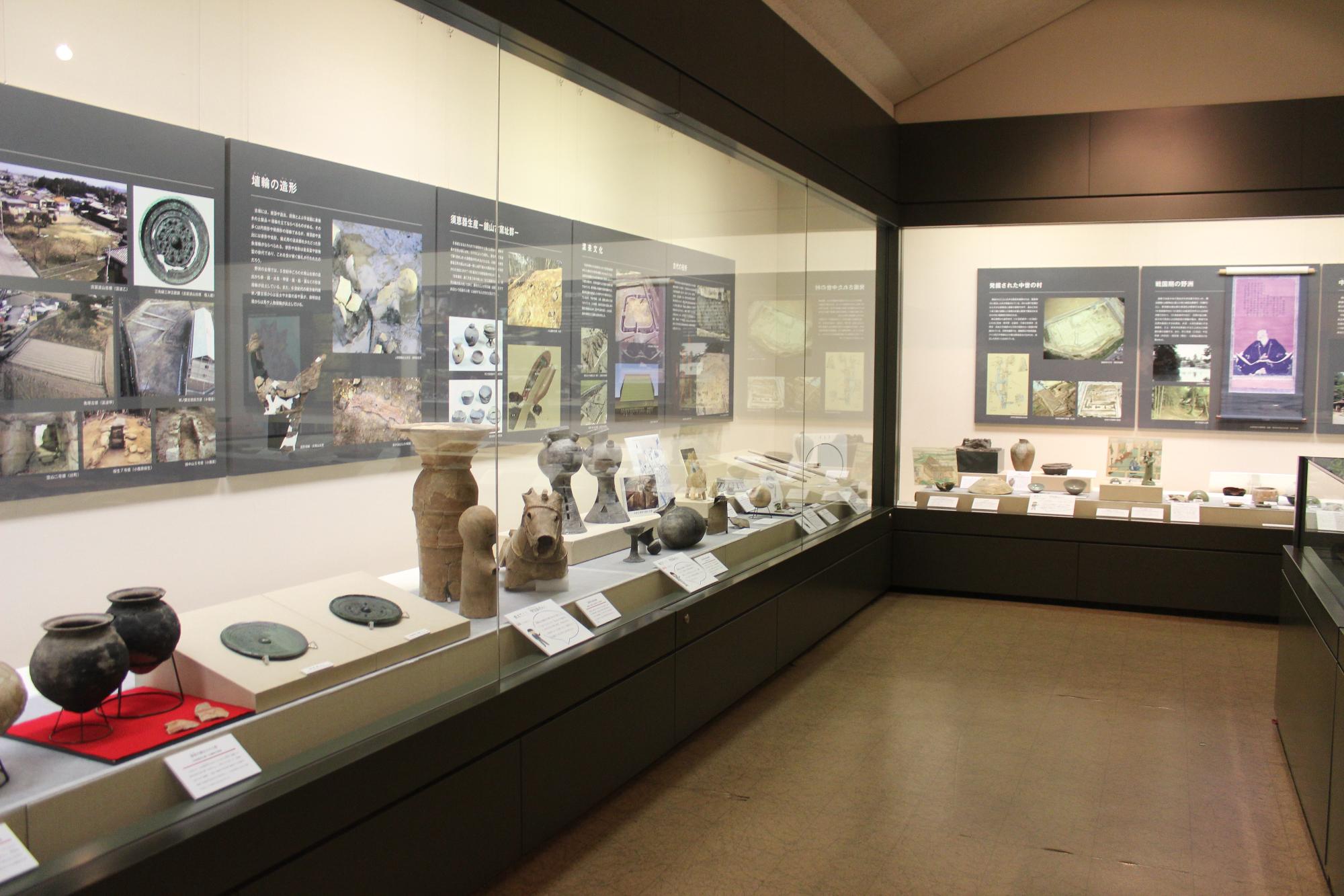 国史跡大岩山古墳群のうち、円山古墳・甲山古墳から出土した装身具や武具・武器・馬具などの副葬品を展示します。