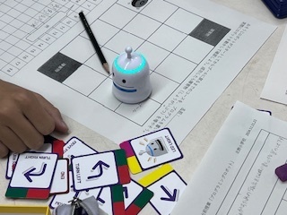 五年後、北野学区に開校予定の県立高等専門学校準備室の先生方に来校いただき、(入学すれば、今の6年生が一期生になります)6年生を対象に高等専門学校の説明とロボットにプログラミングをさせて,動作をさせる学習を指導していただきました。ロボットの動作がうまくいかなくても、試行錯誤しながら、プログラミングを見直しながらチャレンジする姿が印象的でした。