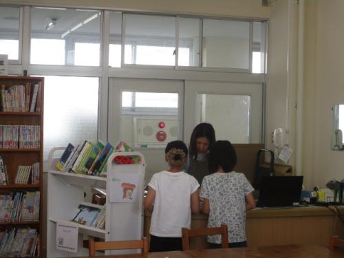 今年度、「学校司書」が篠原小学校に配置され、週2日きていただいています。図書室の整理以外に、子どもたちに読み聞かせをしていただいたり、授業で活用できる教材などアドバイスいただいたりと幅広く活動していただいています。1学期の貸出冊数は前年の2.5倍に増加しました。