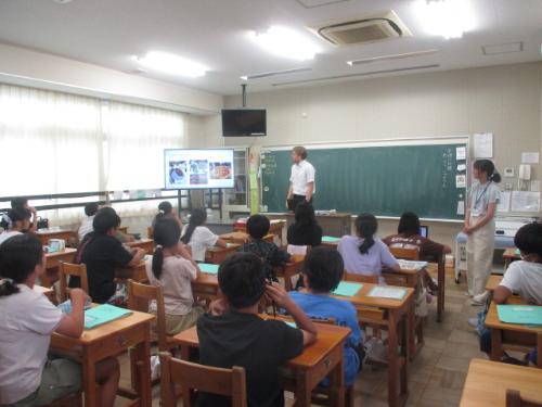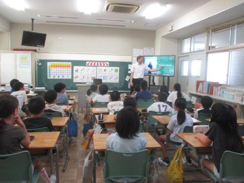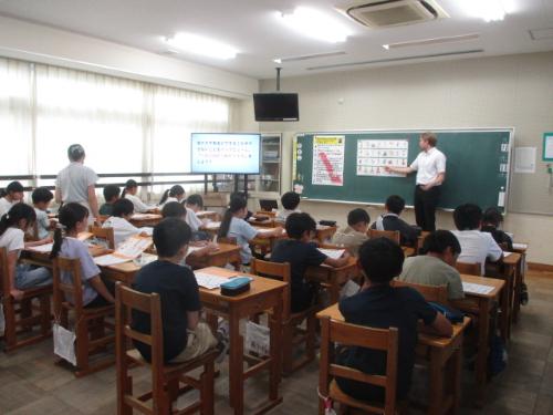 今日は、5時間目に5年生、6時間目に6年生の外国語科の授業に、ALTのパトリック先生がきてくださいました。5年生では、自分のできることやできないことを表現する英語「I can ( )」 「I can’t( )」を学びました。6年生の、「自分の夏休みの思い出を伝えよう」の学習では、「What did you do in summer?」と質問したり、「I went to ( )」行った場所を答えたりするなど、5年生も6年生もパトリック先生のイングリッシュをきいて、何度もリピートして慣れていきました。子どもたちは、英語でのコミュニケーションにどんどんチャレンジし、英語を学ぶ楽しさを感じていました。
