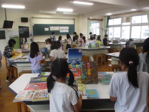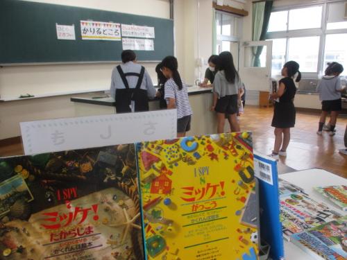 今日は、移動図書館の日でした。野洲図書館さんが子どもたちのために、いつも楽しい本をいっぱいもって来てくださいます。昼休みは、多くの子どもたちでにぎわっていました。図書館の方に借りたい本を一緒にえらんでもらったり、おすすめの本を紹介してもらったりしていました。一人2冊までかりることができます。机の上に本をジャンル別においてくださっているので、本がとても選びやすいです。