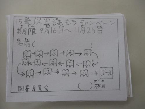 図書委員会…『本をいっぱい読もうキャンペーン』(9月16日~11月25日)「 本を15冊以上借りて読んだ人に賞状をわたします。たくさん本を読んでください。」とよびかけました。