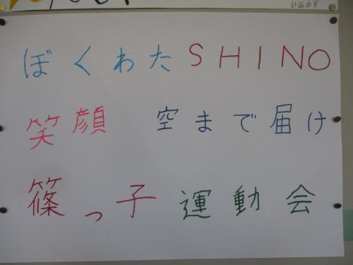 運動会のテーマ『ぼく わたSHINO笑顔 空まで 届け 篠っ子運動会』に決定したお知らせがありました。