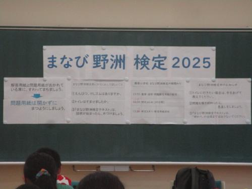 昼休みに「まなび野洲検定2025」が実施されました。「まなび野洲検定」とは、野洲市内の小学校4~6年生を対象に、郷土の自然環境や産業、人物や身近な歴史文化遺産などに関する知識を問います。1級合格には、30問のうち27問以上の正答が必要です。2級合格には、22問以上の正答が必要です。3級合格には、17問以上の正答が必要です。受験を希望した子どもたちは、真剣に時間いっぱいチャレンジし、勉強してきた成果を十分発揮することができたのではないでしょうか? みんな合格してほしいです!
