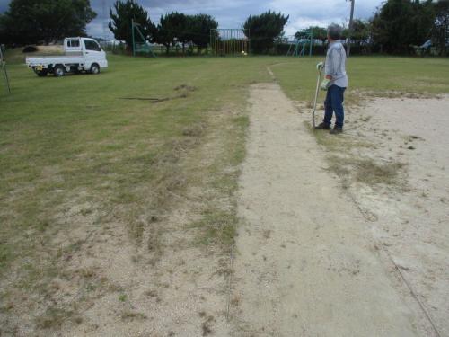 また、地域の方がトラックまわりの走るところの整備をしてくださっています。草が芝のようになっているところは、滑りやすいため丁寧に手作業で取り除いていただいています。毎日、子どもたちのために本当にありがとうございます。