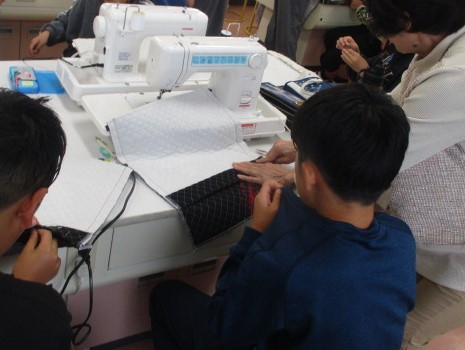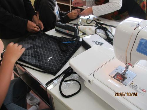 6年生家庭科「ミシンでナップザックをつくろう」の学習に、ボランティアの皆様にご支援いただき、とてもスムーズに作業をすすめることができました。ボランティアさんが「その調子」「上手上手」「いい感じやね」「いいよ。慣れてきた」など、やさしい言葉がけで子どもたちを励ましていただいたおかげで、どの子も意欲的に取り組むことができました。おかげさまで、修学旅行で使えるすてきなナップザックが完成しました。2日間ご支援いただきましたボランティアの皆様、本当にありがとうございました。