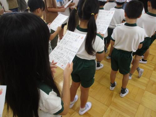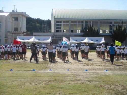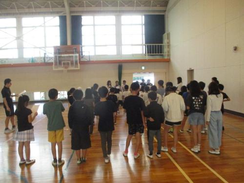 2時間目に全校で運動会の開会式やラジオ体操などの練習をしました。暑い中での練習でしたが、みんなよく頑張りました。計画委員会の司会の人や式台にたつ人の方をみて聞く姿勢がすばらしかったです。色別の応援では、色リーダーさんのだす声がとてもよく、みんなもまとまって声がでていて、一人ひとりががんばろうという思いを感じました。来週は、閉会式の練習があります。「きびきび行動」「聞く姿勢」を忘れず本番は、最高にかっこいい姿を期待しています。