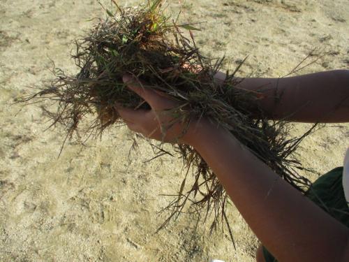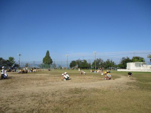 環境委員会の呼びかけで、4回目の草抜き大会がありました。朝の時間の10分間ですが、今日も子どもたちは一生懸命に活動しました。「お客さんのところがまだきれいになっていない。」「昼休みも草抜きする。」と運動会に間に合うかどうか心配する子どもたちの声がありました。日々、用務員さんなど職員が運動場の手入れをしていますが・・・あと1週間でどれだけきれいになるかちょっと心配しているところです。本日、1.2年生の団体演技の練習が運動場でありました。フィールド内の草の状況はこんな感じです。(3つめの写真)