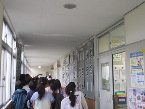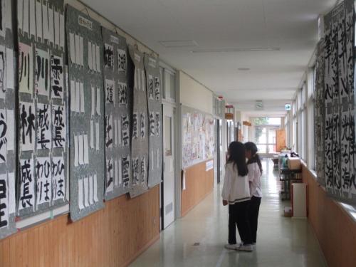 今朝の気温は15℃ぐらいで急に肌寒くなり、秋の深まりを感じる季節になりました。運動会が終わり、10月21日~10月27日まで『書写巡回展』がはじまりました。1階職員室前廊下に展示しています。