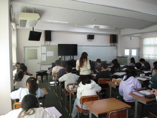今日の5年生音楽科の学習は、「静かにねむれ」の和音で旋律づくり でした。子どもたちは、自分なりのイメージをもって楽しく旋律づくりをしました。考えた旋律がどんな感じに仕上がっているかリコーダーを使って音を確かめました。自分のオリジナルをリズムにあてはめて、みんなでリコーダー演奏をしました。同じ和音のなかから音をひろっているので、大変きれいな演奏でした。子どもたちは「のびやかな感じがした」「おだやかな感じがした」「だんだん元気になっていく感じがした」など、音楽の感想を書いていました。