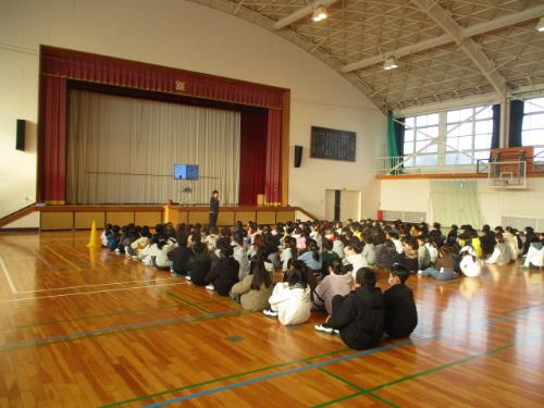 守山警察の方から『オーバードーズ』について話がありました。市販の薬を大量に摂取するなど、間違った使い方は、乱用になり心と体を傷つける危険な行為なので用量、用法を守ってほしいこと。そして、もうすぐ中学生になりますが、ルールを守って自転車に乗ってほしいことやSNSで犯罪に巻き込まれないようにしっかりルールを守って使ってほしいことについてもお話がありました。