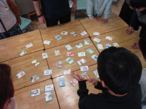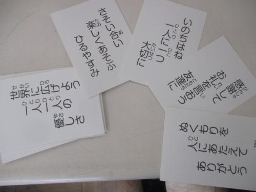 次に、小学生の友だちがつくった人権カルタに挑戦しました。「守ろうよ人の命をやさしさで」「へんじをかえそう無視しない」「ちょっとだけ勇気をもてば仲直り」「つらい時手をさしのべる思いやり」など、子どもたちは、言葉の意味を考えながら楽しく学びました。