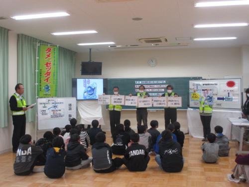 消防署の方からは、「災害は、いつ起こるかわかりません。今日のように先生がいない時に起こるかもしれません。また、学校以外のところで地震が起きた場合は、どうするのか、どこに避難するかなど、お家の方と話し合っておいてほしいです。」などお話しいただきました。