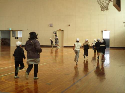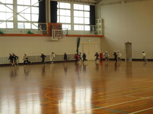 1月8日~2月6日の1か月間を『持久力アップ』期間として全校で持久走に取り組んでいます。持久走に取り組むことを通して、仲間と一緒にからだを動かすことの楽しさを感じられる子どもを育成することを目的に、体育科の準備運動として時間走を行っています。低学年は3分程度、中学年は4分程度、高学年は5分程度を一定の速さで続けて走ること、苦手な子どもたちは自分のペースで無理のない速さで走ることにしています。走った距離を持久力アップカードに記録しています。今日、1年生の体育科学習では、なわとびの前にBGMを流して時間走を行い先生も一緒に走りました。休み時間も元気に運動場を走っている子どもたちの姿がみられます。この取組が将来の健康的な運動習慣につながることを期待しています。