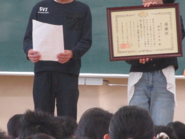 次回の篠っ子集会で、全校の皆さんに感謝状をいただいたことを紹介します。