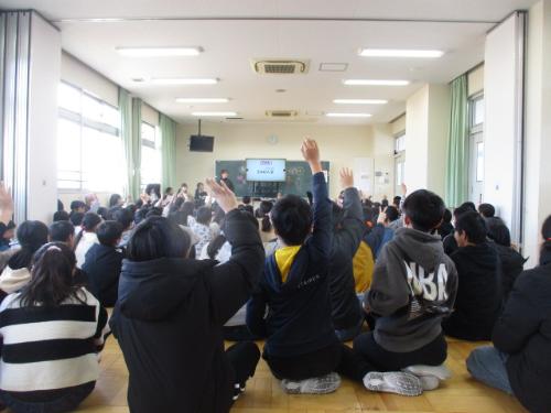 1月27日の避難訓練は、休憩時間の安全な避難行動の仕方を考え、放送や教職員の指示に従って、安全かつ速やかに避難することができることを目的に、今回は、子どもたちに訓練の時間を知らせずに『地震を想定したシナリオレス訓練』を実施しました。