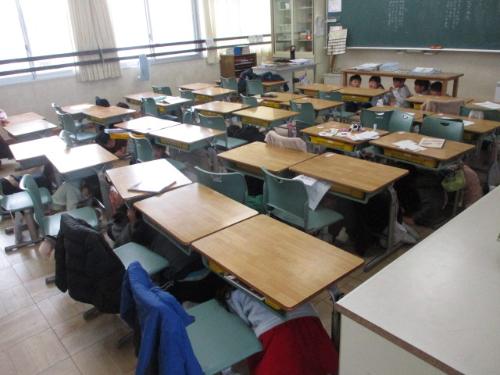 2. 校舎にいる人は、机の下など安全な場所にかくれることができていました。
