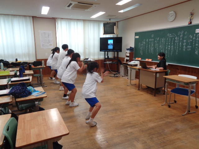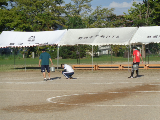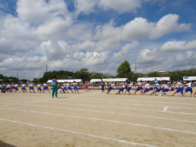 3時間目以降は、団体育がグラウンドで実施されました。本日は、綱引きと玉入れの確認と練習でした。草抜きと見学にグラウンドに出ていた校長も人数が足りないということで綱引きの練習にかり出されました。たった1回(1分間)の練習で、両手(上腕二頭筋、上腕三頭筋)両足(大腿直筋、大腿二頭筋)の筋肉がピクピクしてリタイアしてしましました。生徒は3回も練習していたので、「若いっていいなあ」とつぶやくしかありませんでした。団練習は、暑さ対策で1.2時間目に実施していますが、まだまだ暑い中での活動なので、水分や帽子の着用など熱中症対策もしながら当日まで頑張ります!