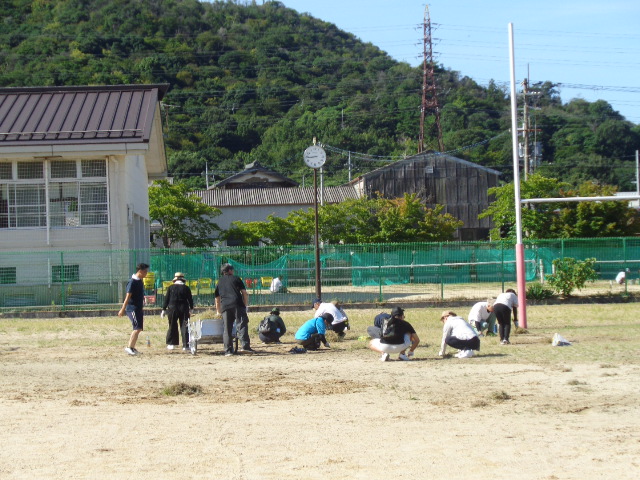 午前8時より多数の保護者・地域の皆様に協力していただき、グラウンドの除草作業を行いました。本当にありがとうございました。