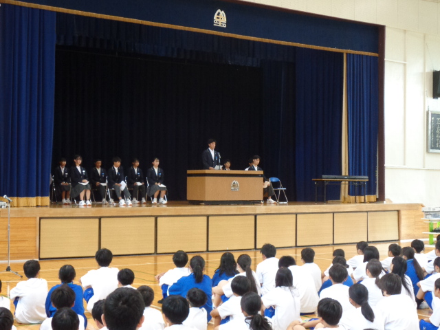 来週の木曜日・金曜日に体育祭が行われますが、整った環境の中で、素晴らしい団アピールや元気いっぱいに競技をする姿を見せてほしいと思います。保護者・地域の皆様にもぜひ学校に来ていただき応援してもらえるとありがたいです。