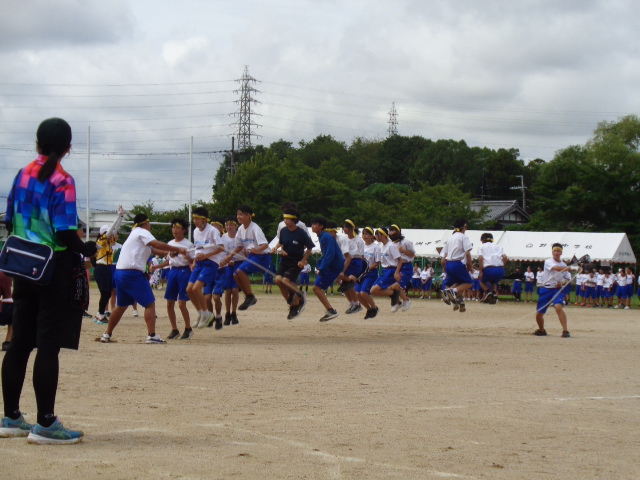 心配していた天気も晴れて絶好のコンディションの中、体育祭2日目を実施しました。2日目のメインは3年生が夏休み前から準備を進めてくれた団アピール。どの団も団結して最優秀賞を目指して頑張りました。順位はつきましたが、どの団も素晴らしい団アピールで感動しました。3学年で取り組み、縦の関係の仲間づくりができました。今度は、文化祭の学年劇や合唱コンクールで横の関係の仲間づくりを目指してほしいです。体育祭の取り組みお疲れさまでした。