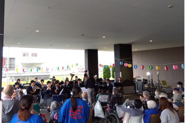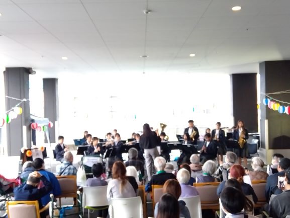 10月26日に介護老人保健施設「すみれ苑」で本校吹奏楽部が演奏しました。平和堂の音楽や学園天国など聞きなじみのある曲を演奏して、利用者さんと一緒に盛り上がりました。今後も交流の機会を持っていきたいと考えています。