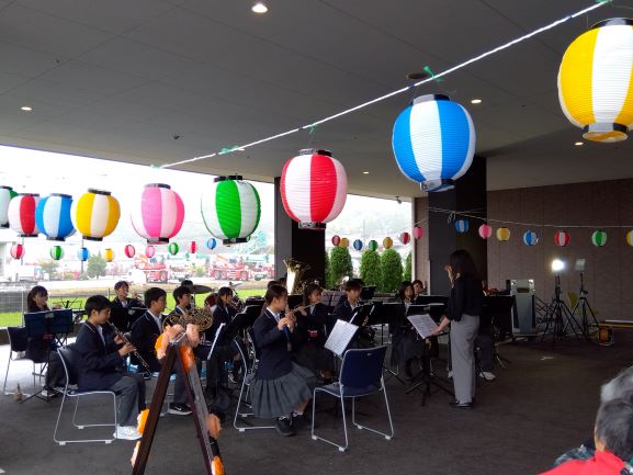 10月18日にコミセンやすまつりが開催され、本校の吹奏楽部が出演しました。会場には多くの観客がつめかけ、本校吹奏楽部の演奏を楽しんでいました。アンコールもあり、大変盛り上がっていました。