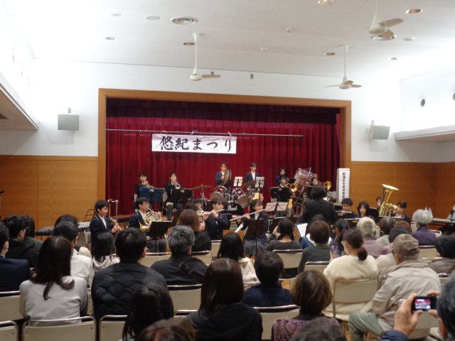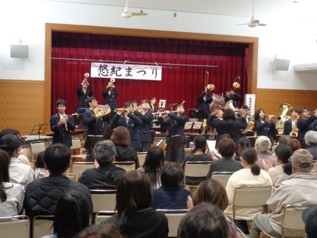 11月23日にコミセンみかみで「悠紀まつり」が開催されました。本校から吹奏楽部がステージ発表し、美術部の作品を玄関ホールに展示していただきました。吹奏楽部の発表は多くの方に観ていただき、ホールが満席状態でとても盛り上がっていました。体育祭の団アピールの様子を玄関の壁面で流しました。多くの人が足を止めて観ていただくことができました。