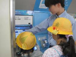 駅員さんに切符の買い方を教えていただいた後、改札口を出てホームに降り、説明を受けました。その後、駅員さんに、駅内の設備や仕事のことについて質問をしました。