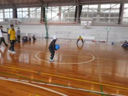 2月5日、滋賀県ゴールボール協会様にご協力いただき、3年生がゴールボールを体験しました。ゴールボールは、視覚に障害のある人を対象に考えられたチーム球技で、パラスポーツの一つです。今回は、中に鈴の入ったボールを幅12mのゴールに転がすように投げ入れたり、そのボールを守備したりする体験をさせていただきました。