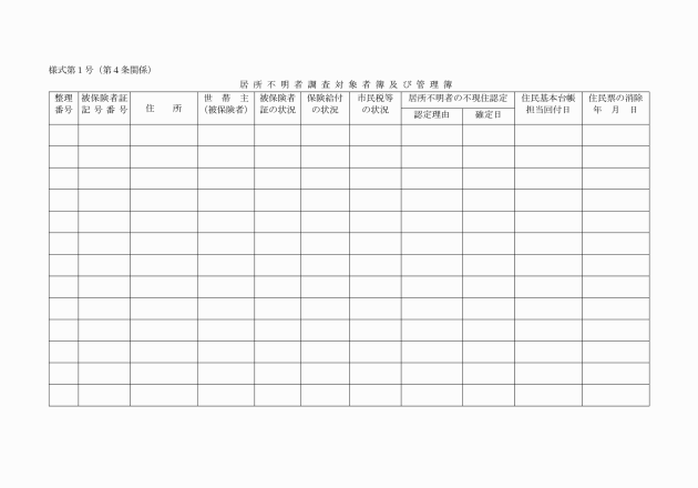 第11条 不現住者と認定された者については、保険年金課は税務納税課に合議を得た上で、関係する資料を添付の上、市民課に対し、住民票の職権消除を依頼するものとする。