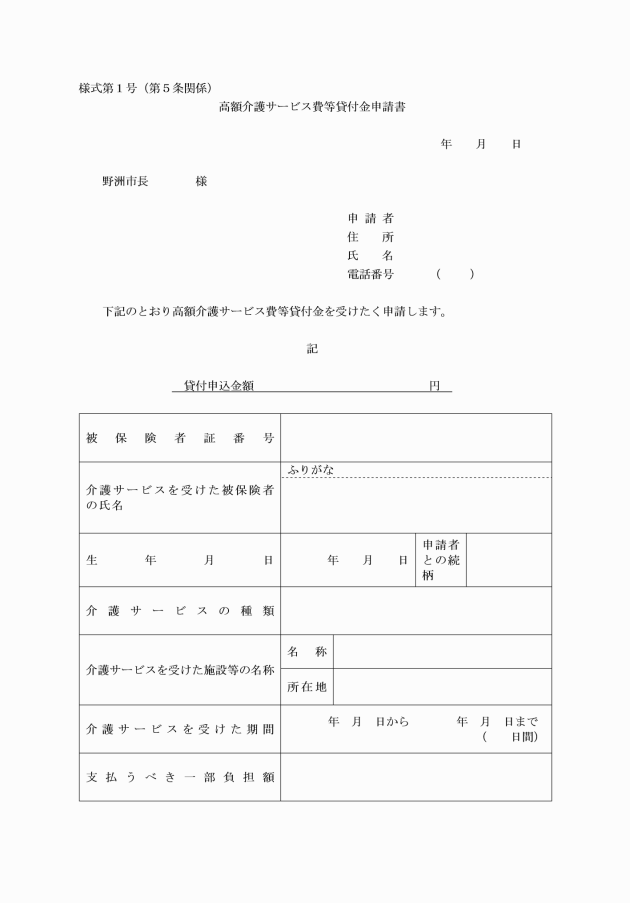 (1) 高額介護サービス費等貸付金申請書(様式第1号)