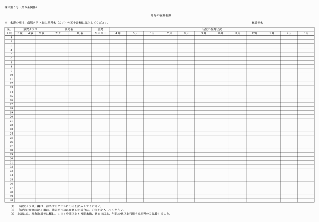 2 対象施設等は、市長が別に定める日までに、月毎の在籍名簿(様式第5号)を市長に提出しなければならない。