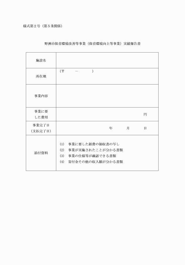 (1) 野洲市保育環境改善等事業(保育環境向上等事業)実績報告書(様式第2号)