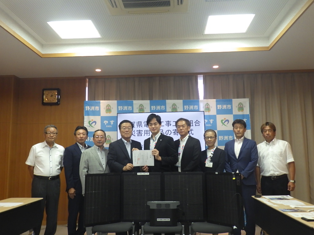 滋賀県電気工事工業組合からの災害用備品の寄贈について(令和7年8月12日)