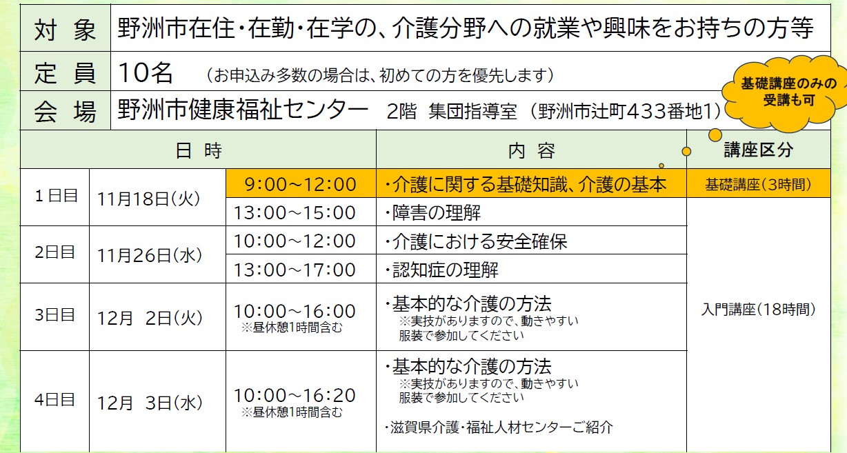 〇3日目・4日目は実技がありますので、動きやすい服装で参加してください。